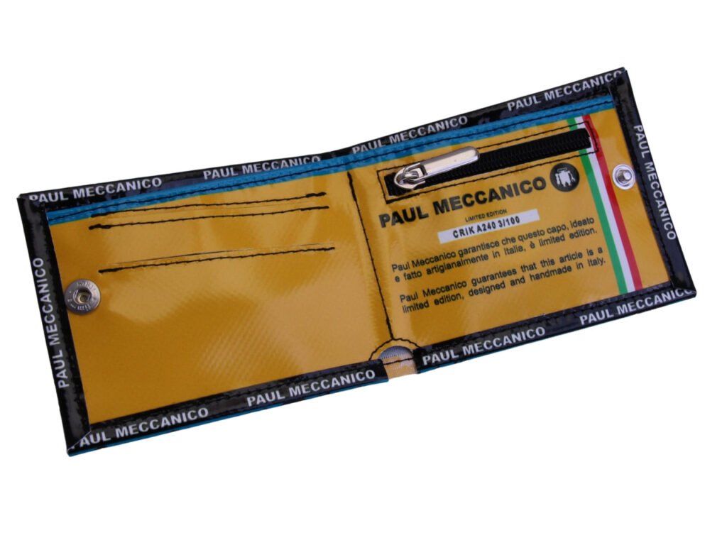 MEN’S WALLET TURQUOISE WITH PAISLEY FANTASY. MODEL CRIK MADE OF LORRY TARPAULIN.