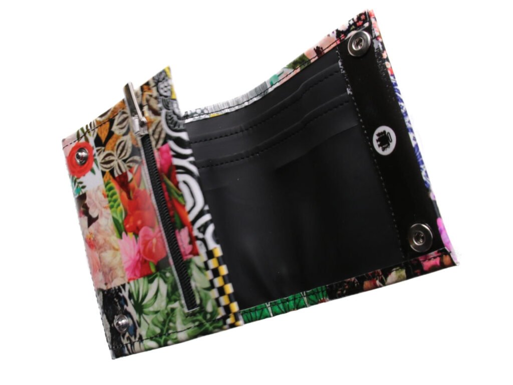 WOMEN’S WALLET FLORAL FANTASY. MODEL TREK MADE OF LORRY TARPAULIN.